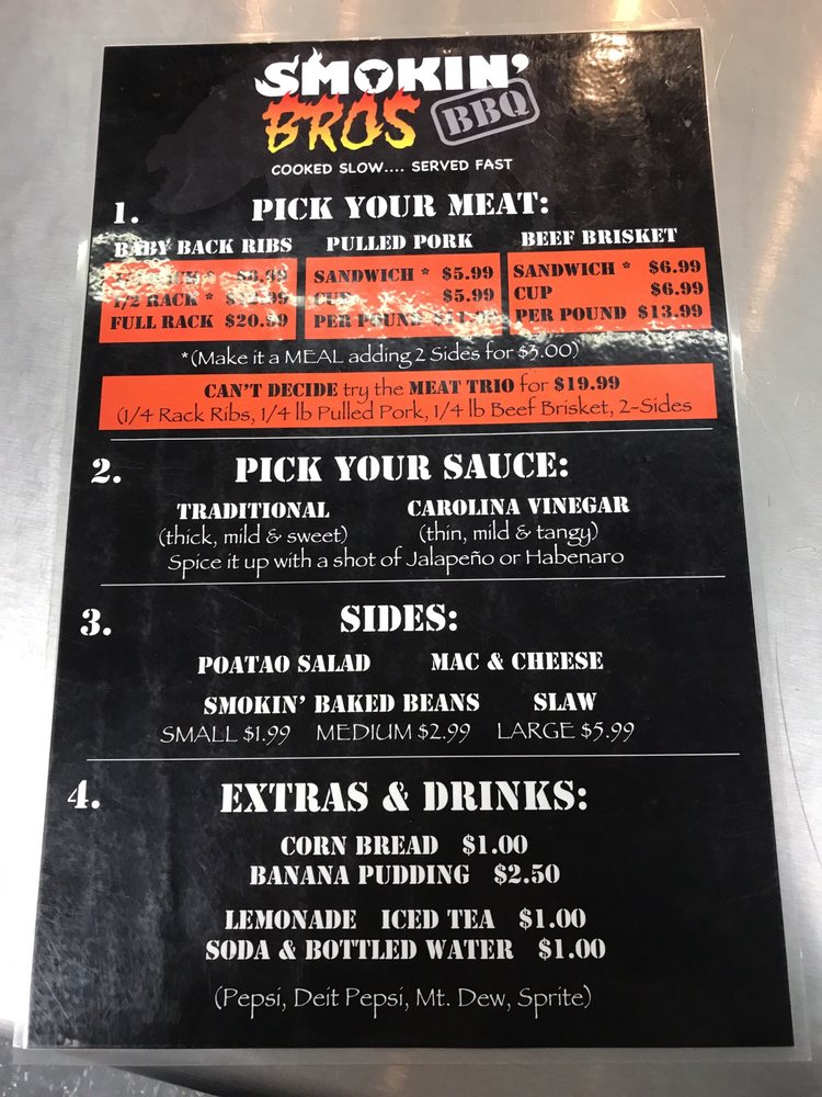 Welcome to Smokin’ Bros BBQ, an inviting culinary haven located in Mansfield, OH, where BBQ lovers gather for hearty, flavorful dishes. The menu showcases a mouthwatering selection, highlighted by their tender Beef Brisket and succulent Pulled Pork. Each dish promises a burst of flavor, with options like the Brisket Sandwich and mountain of Smokin' Baked Beans paired with your choice of sides.